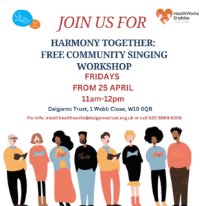 Join us every Friday from 11:00 AM to 12:00 PM at the Dalgarno Trust Community Centre for a relaxed, fun session where you can sing, connect, and enjoy the joy of music together. No experience needed — just come along and get involved!