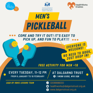 New to pickleball or a seasoned player? Come join us every Tuesday, 11:00–12:00 at Dalgarno!