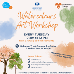 Join us for a creative and relaxing Watercolour Art Workshop at Dalgarno Trust, running from Tuesday 6 January to 10 February.