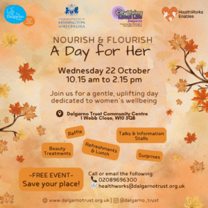 Join us at Dalgarno Trust on Wednesday, 22 October, from 10.15 am to 2.15 pm for a special day dedicated to women!